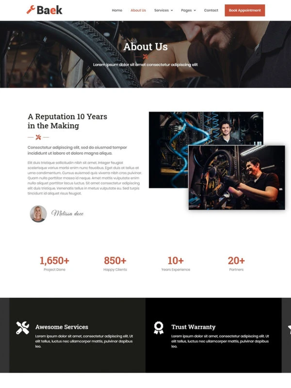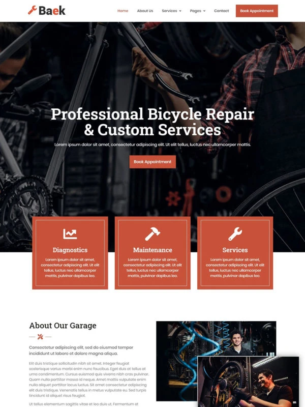 Bicycle Repair Website Template – Elementor