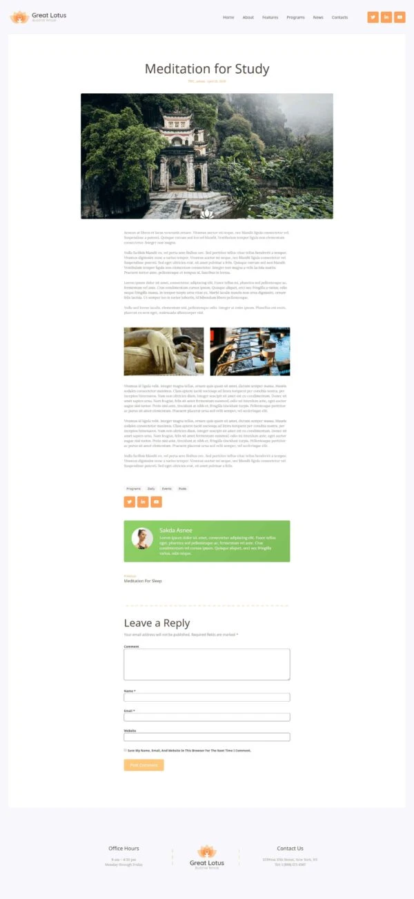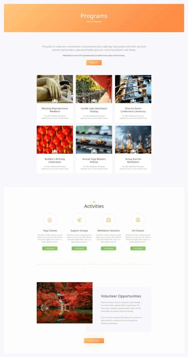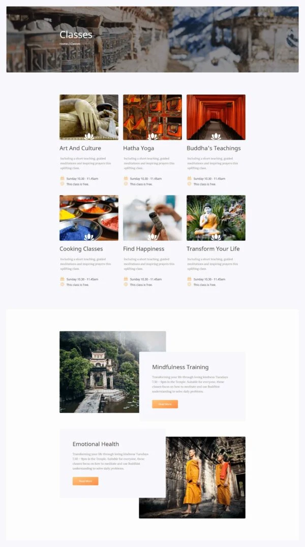 Buddhist Temple Website Template – Elementor