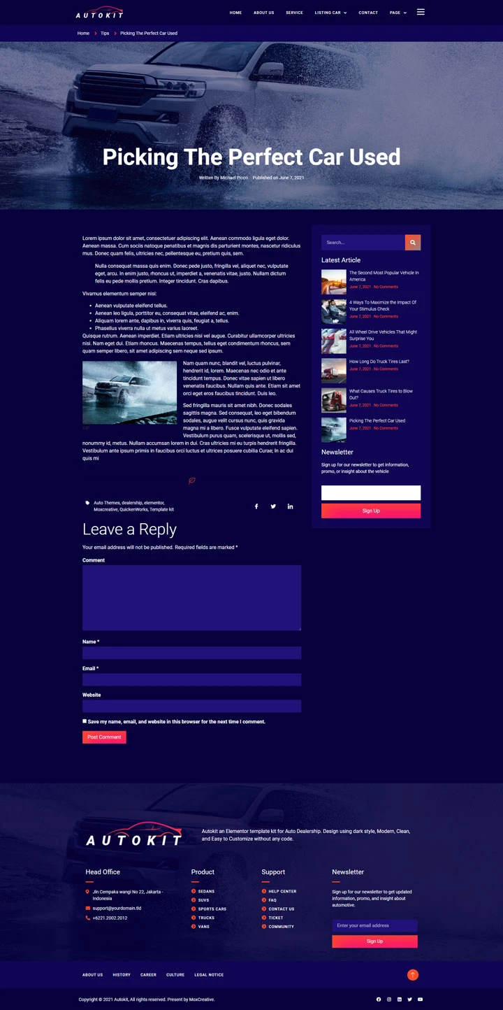 Car Dealership Website Template – Elementor