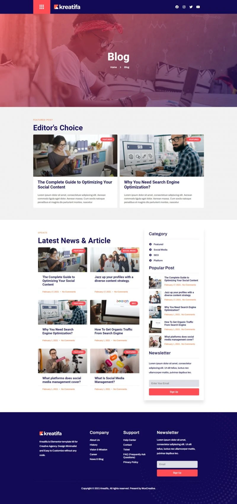 Creative Website Template – Elementor