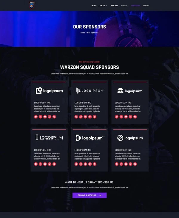 Esports Website Template – Elementor