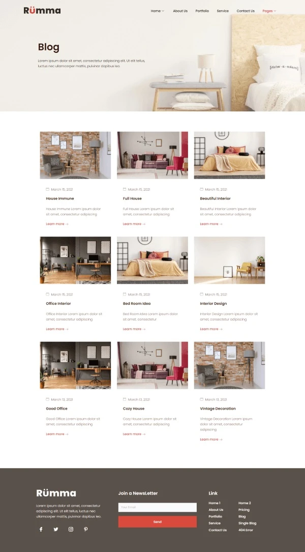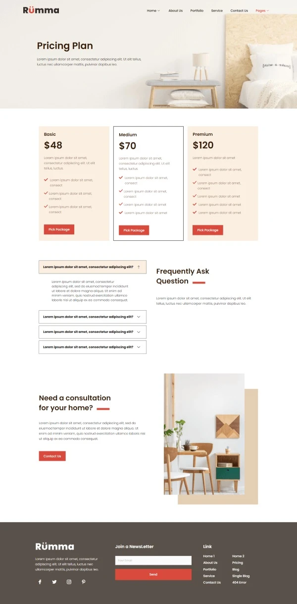 Interior Furniture Website Template – Elementor