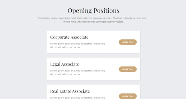 Discover our website template specifically designed for law firms. With an elegant and professional design, it showcases your legal services while providing seamless navigation for your clients. This template is fully customizable with Elementor, allowing you to adjust colors, fonts, and layouts to match your branding. Optimized for mobile devices, it guarantees an optimal user experience. It’s also compatible with the latest versions of WordPress and WooCommerce, making it easy to manage your content and services online.