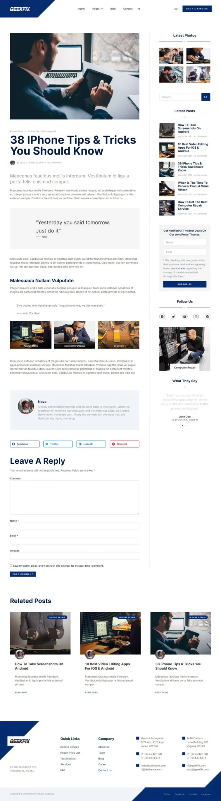 Discover our Elementor template dedicated to smartphone, tablet, and computer repair. Designed for professionals and enthusiasts, this template makes it easy to create an attractive and functional website. With an intuitive interface, you can showcase your services, display your work, and offer online quotes. Optimized for SEO, it attracts more customers and improves your visibility on search engines. Compatible with the latest versions of Elementor, WordPress, and WooCommerce, this template is the perfect tool to grow your repair business.