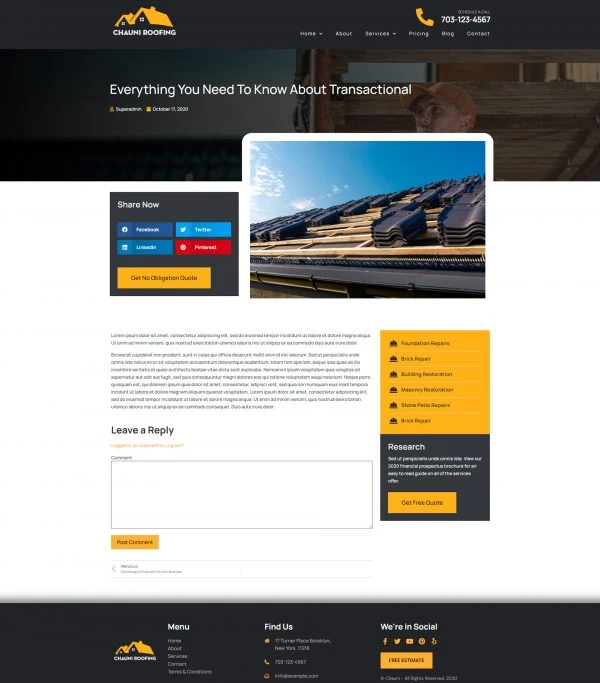 Roofing Website Template – Elementor