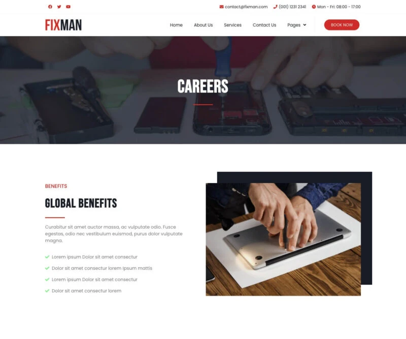 Transform your website with our Smartphone and Laptop Repair Kit, specially designed for Elementor. This intuitive template allows you to create an attractive and functional user interface, ideal for showcasing your repair services. With modern layouts and customizable elements, you can easily adapt the design to your branding. Compatible with the latest versions of Elementor, WordPress, and WooCommerce, this kit is perfect for professionals looking to offer a smooth and efficient customer experience. Enhance your online presence today!