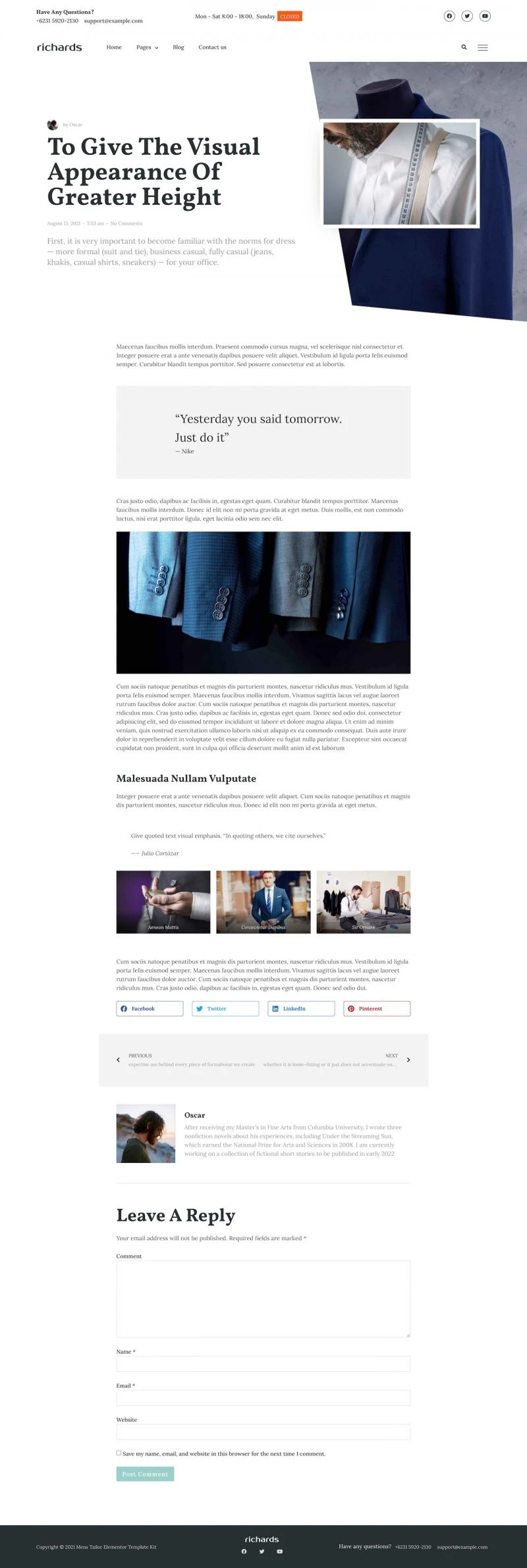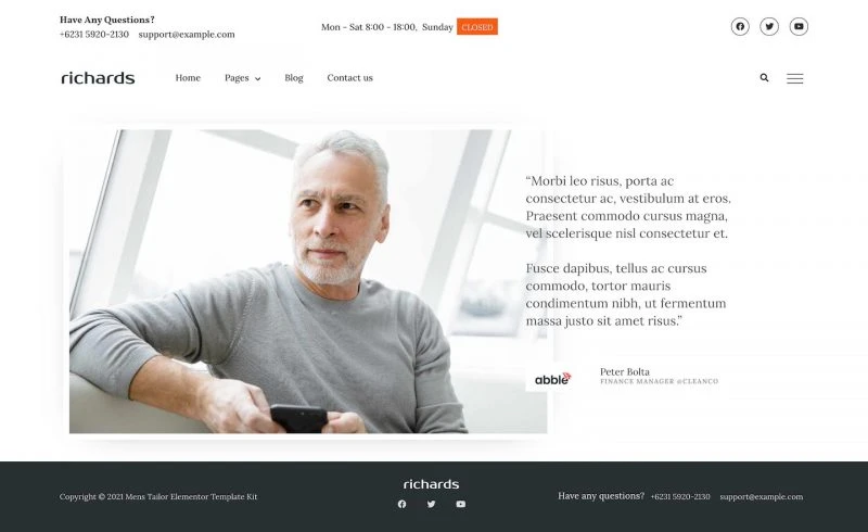 Tailor Website Template – Elementor