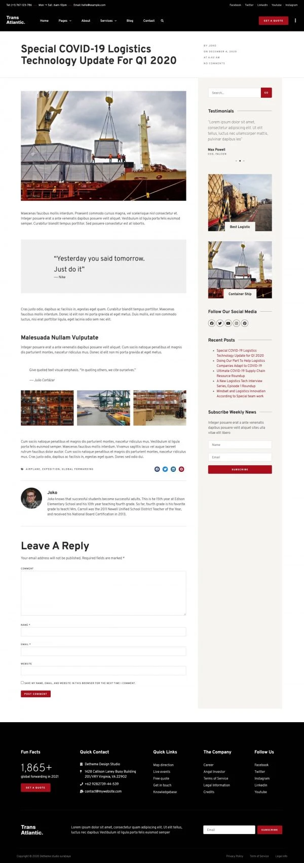 Transportation Logistics Website Template – Elementor